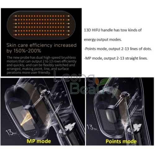 Một loại có tên là 13D HIFU, nócó thể xuất ra 2-13 dòng có thể điều chỉnh và nó có hai chế độ.