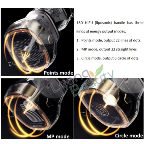 Tay cầm còn lại được gọi là 18D HIFU, nó có 3 chế độ, chế độ 22 đường thẳng, chế độ 22 đường chấm và chế độ hình tròn.